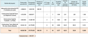 En el cuadro se aporta una comparativa de los volúmenes de agua superficial del Júcar tomados por sustitución de bombeos respecto del total que corresponde según el PHJ, comparando el agua tomada y la que ha dejado de tomarse si se hubiesen realizado las obras con más celeridad.