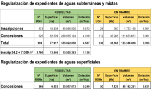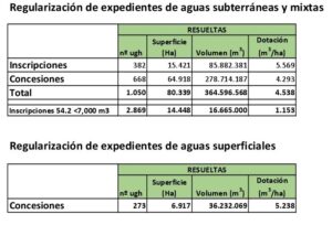 Los principales datos obtenidos de los trabajos en dicho convenio han servido para la definición de las explotaciones de riego, el estudio de expedientes, la evolución de teledetección, para la asignación de volúmenes en los documentos de regularización y control de los planes de cultivo. A diciembre de 2024 había definidas y cargadas en el sistema 5.844 UGH. Ver plano página 3.