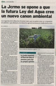 En La Tribuna de hoy: La JCRMO se opone a que la futura Ley del Agua cree un nuevo canon ambiental.